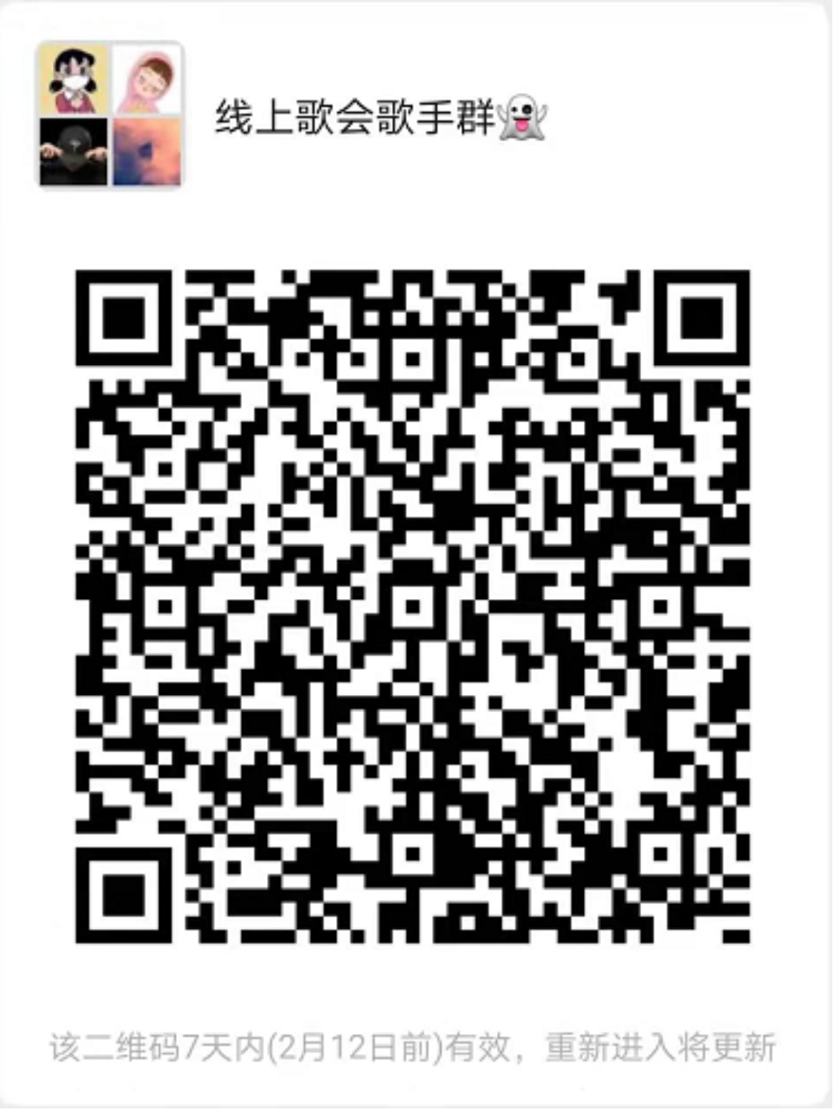 所有报名唱歌的同学请扫描下方二维码进群,届时我们会在全民K歌APP上开设歌房并邀请大家加入。
