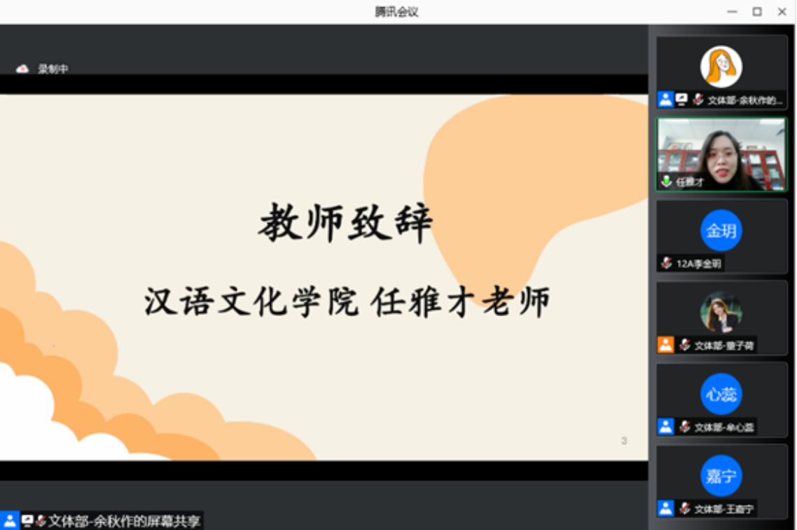 借此机会任老师有“三点希望”送给大家:一是希望大家珍惜求学时光,珍惜当下,在打牢专业基础的同时注重锻炼身体。二是希望大家拥有豁达的人生态度,相信困难是暂时的。三是希望大家达到精骛八极、心游万仞的精神状态,让精神世界变得更加丰盈饱满。