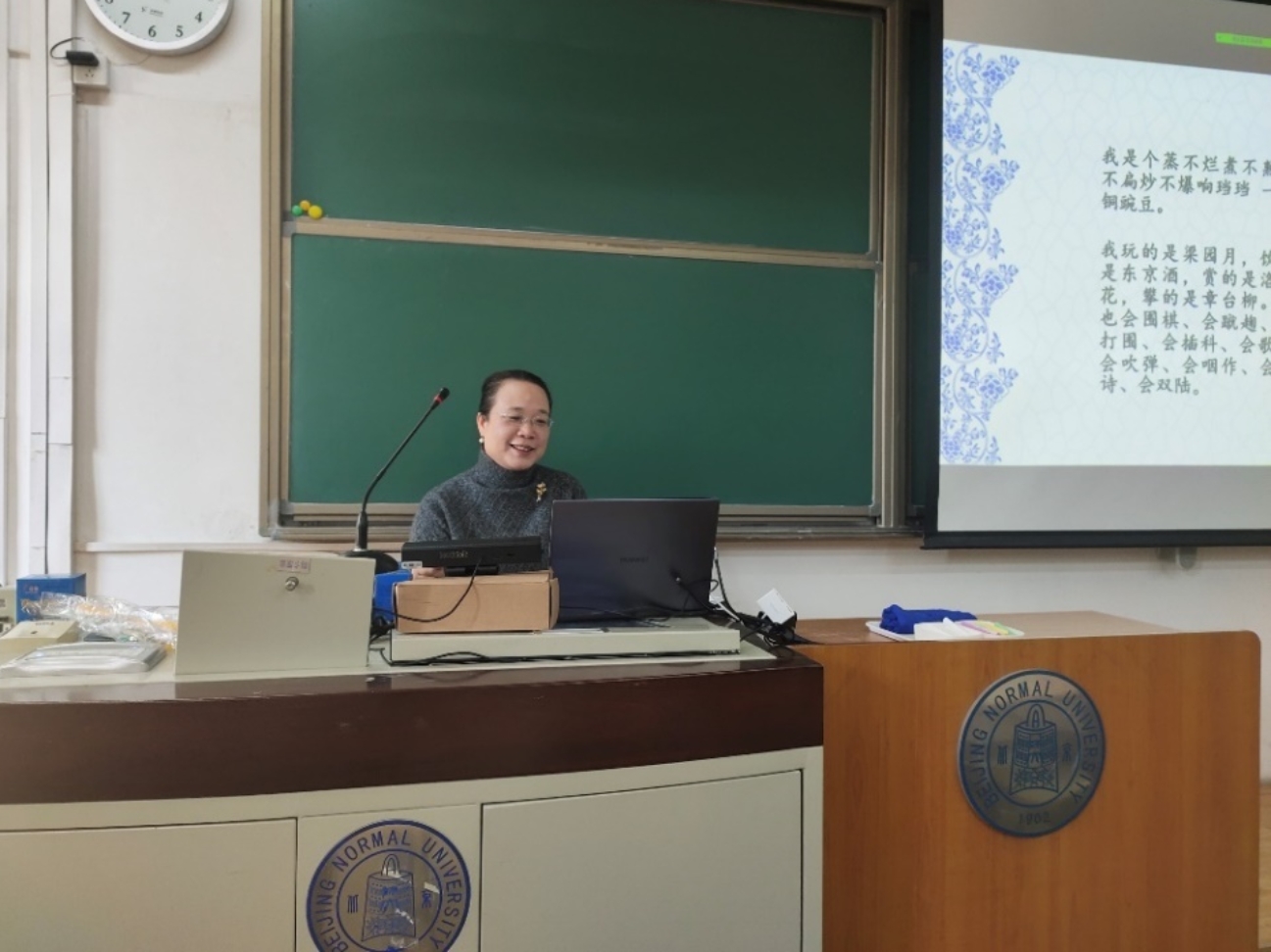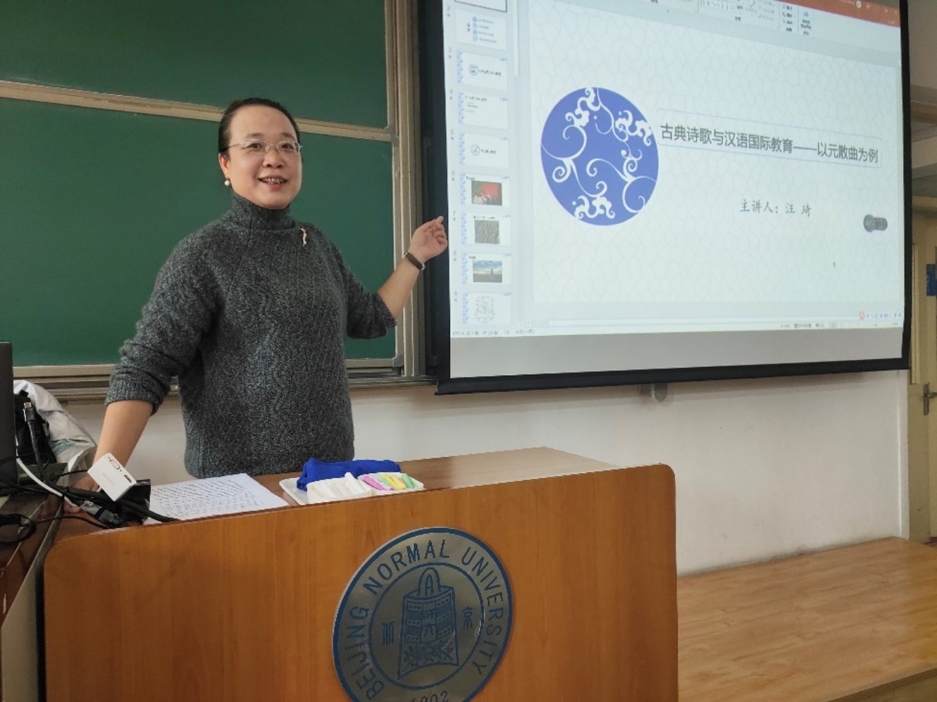 下午13:30,由汪琦老师主讲的“古典诗歌与汉语国际教育——以元散曲为例”讲座在北京校区顺利展开。汪老师分别就为什么要了解元散曲、什么是元散曲、语言学中的元散曲和海外教学中的困惑四个主题进行了讲解。