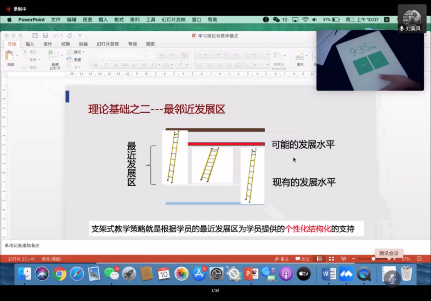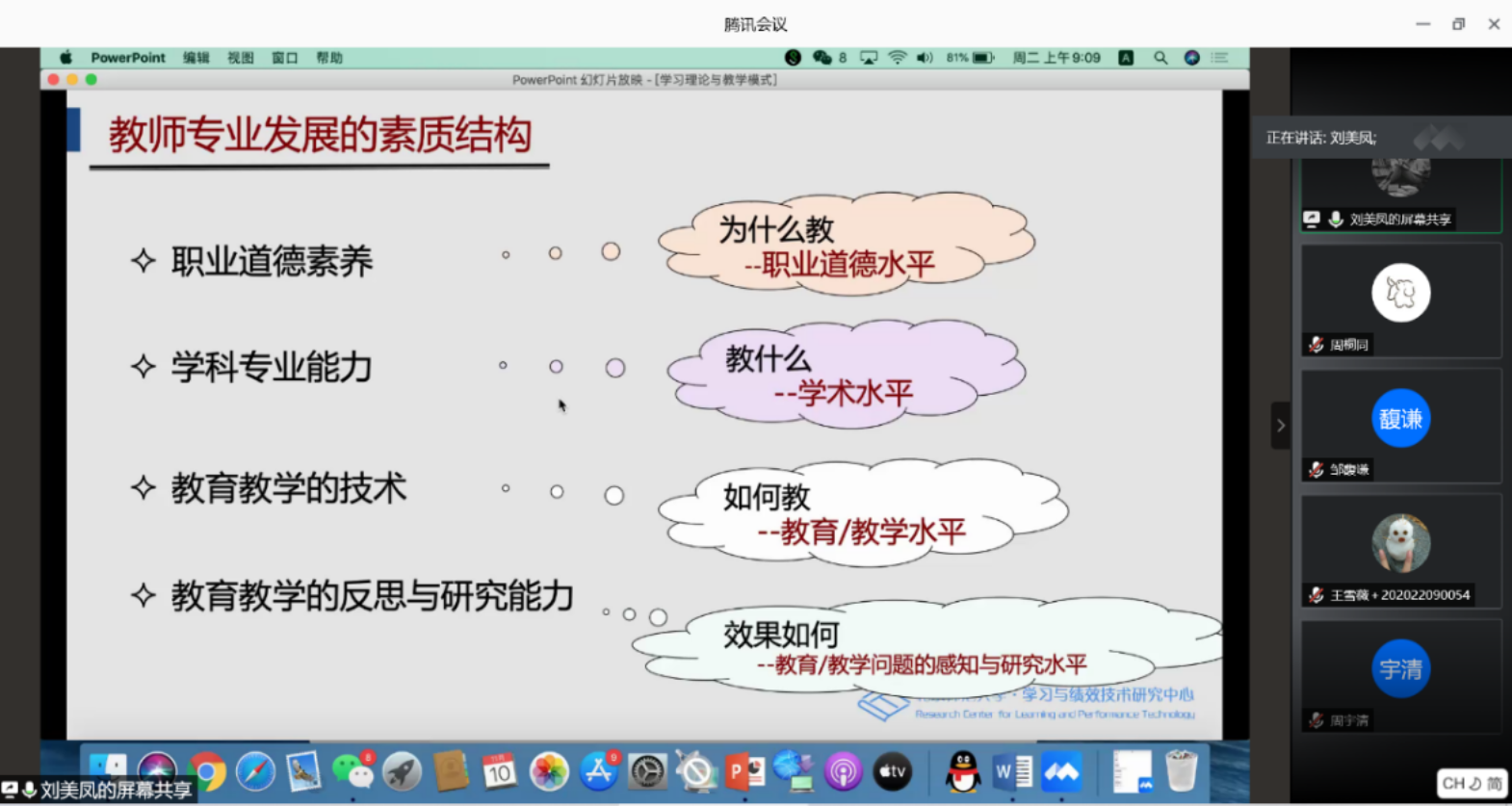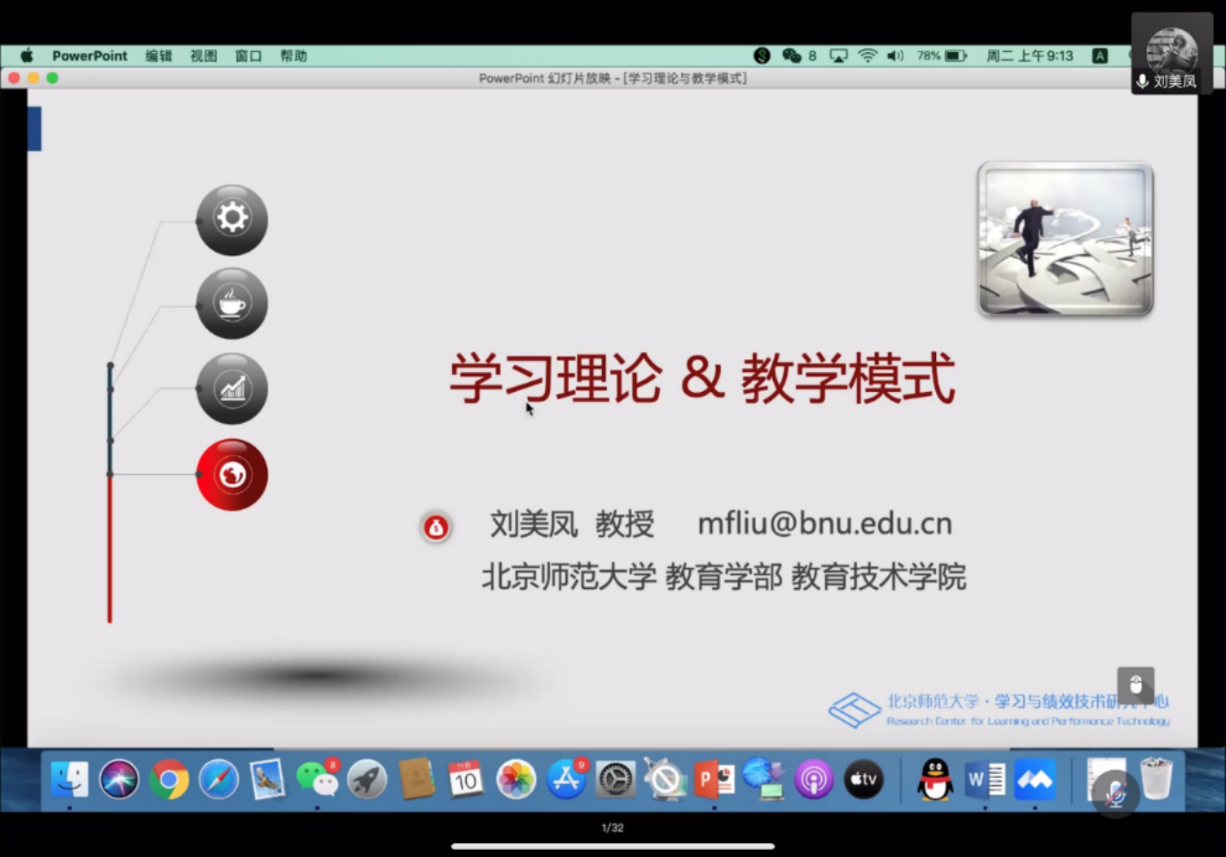 随后,刘美凤教授又通过视频、图片、案例分析等丰富的形式为同学们讲解了支架式教学、认知学徒制教学、随机进入学习、基于资源的学习、任务驱动的学习、分布式学习等几种不同教学模式的特点,并鼓励同学们在实际教学中结合教学对象的具体条件来综合运用不同的教学模式,使对外汉语教学的课堂更加灵活、丰富。