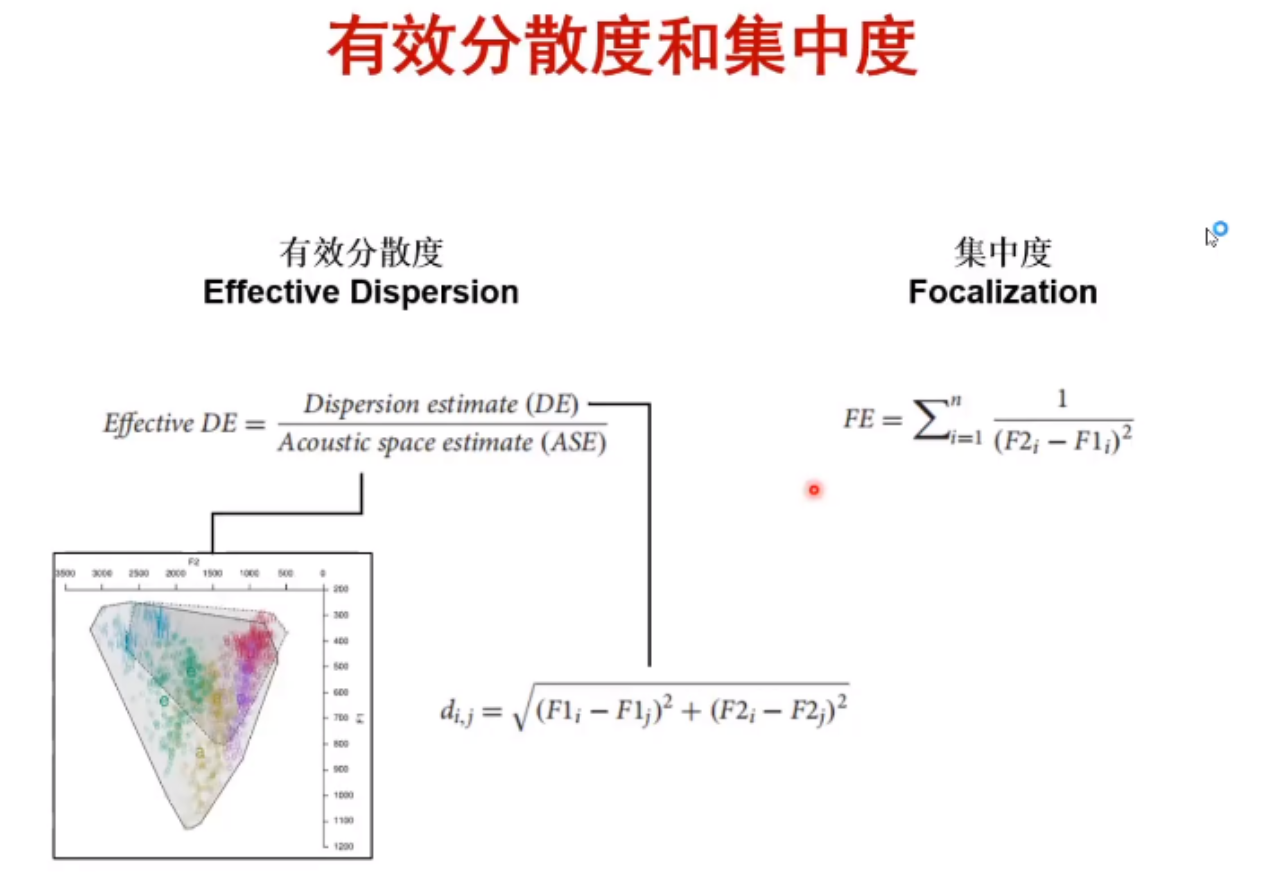 随后,张老师指出了从模拟仿真计算转向实证数据分析的可能性和必要性,并希望采用定量的方法发现真实环境下元音系统结构的变异和优化。在这一环节,张老师详细介绍了自己曾经研究工作中遇到的问题和思考。为了排除个体因素干扰、区分元音系统的个体差异和结构差异,他对“元音空间”进行了标准化操作,在此基础上,提出了“有效分散度和集中度”,并发现:在共时层面,在不同的语系和地区中,有效分散度和集中度呈现负相关关系;在历史演化层面,有效分散度和集中度两个参数之间依然呈现负相关关系,且两个结构特征的变化规律符合“选择性的、最优目标进化”特点的依存关系,这启示我们:元音系统结构的变化其实是“有目标性”的改变,是在朝着某个“最优目标”的方向发生演变。