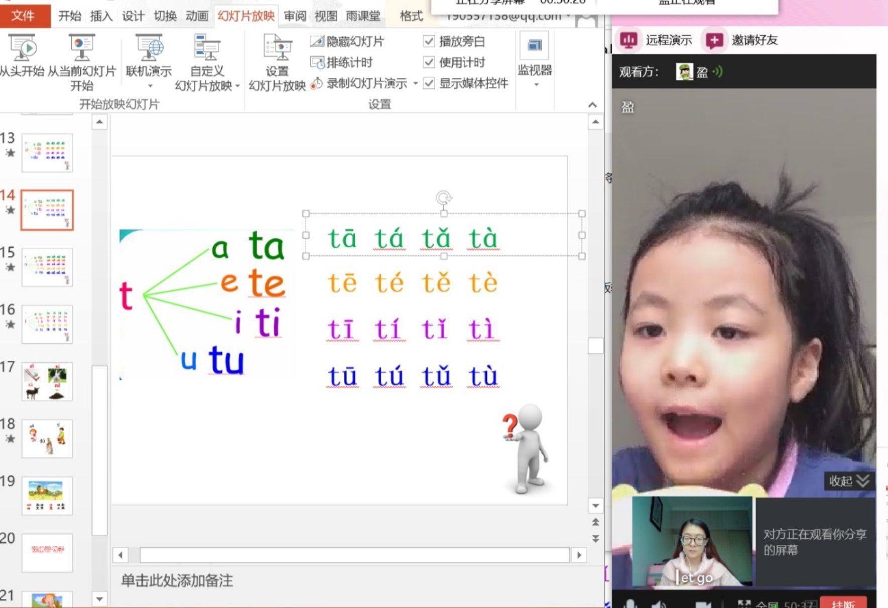 朱雅文说:“其实,每一节课都上得很顺利,没有特别的事情发生。要说印象深刻的话,就是一段时间下来孩子的改变。我之前从未教过一年级的小孩子,一年级的孩子注意力集中时间短,上课还挺有挑战。通过奖励孩子看英文动画片《西游记》,我感觉孩子对英语学习的兴趣提升了不少,这是我最开心的一点。”