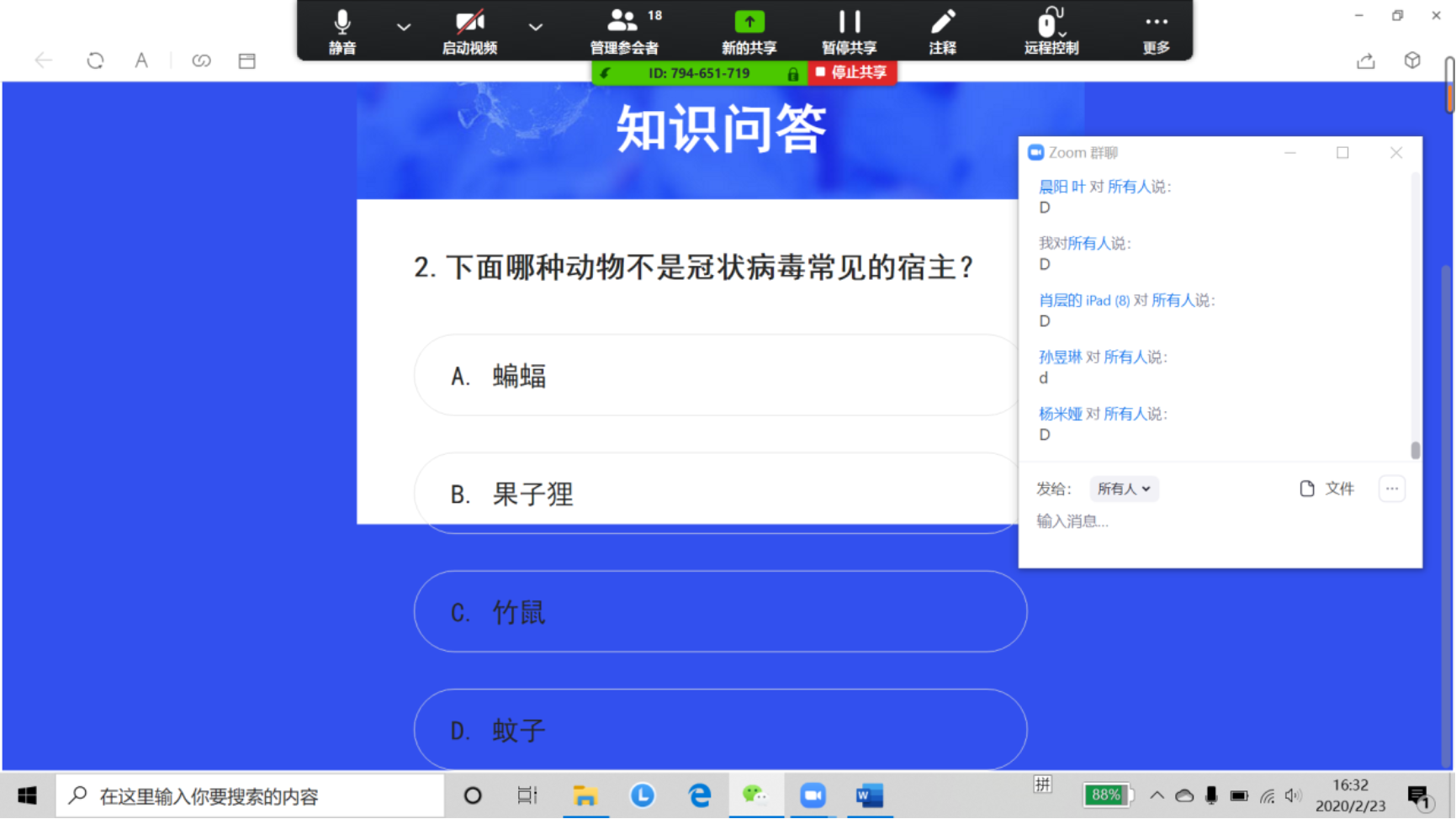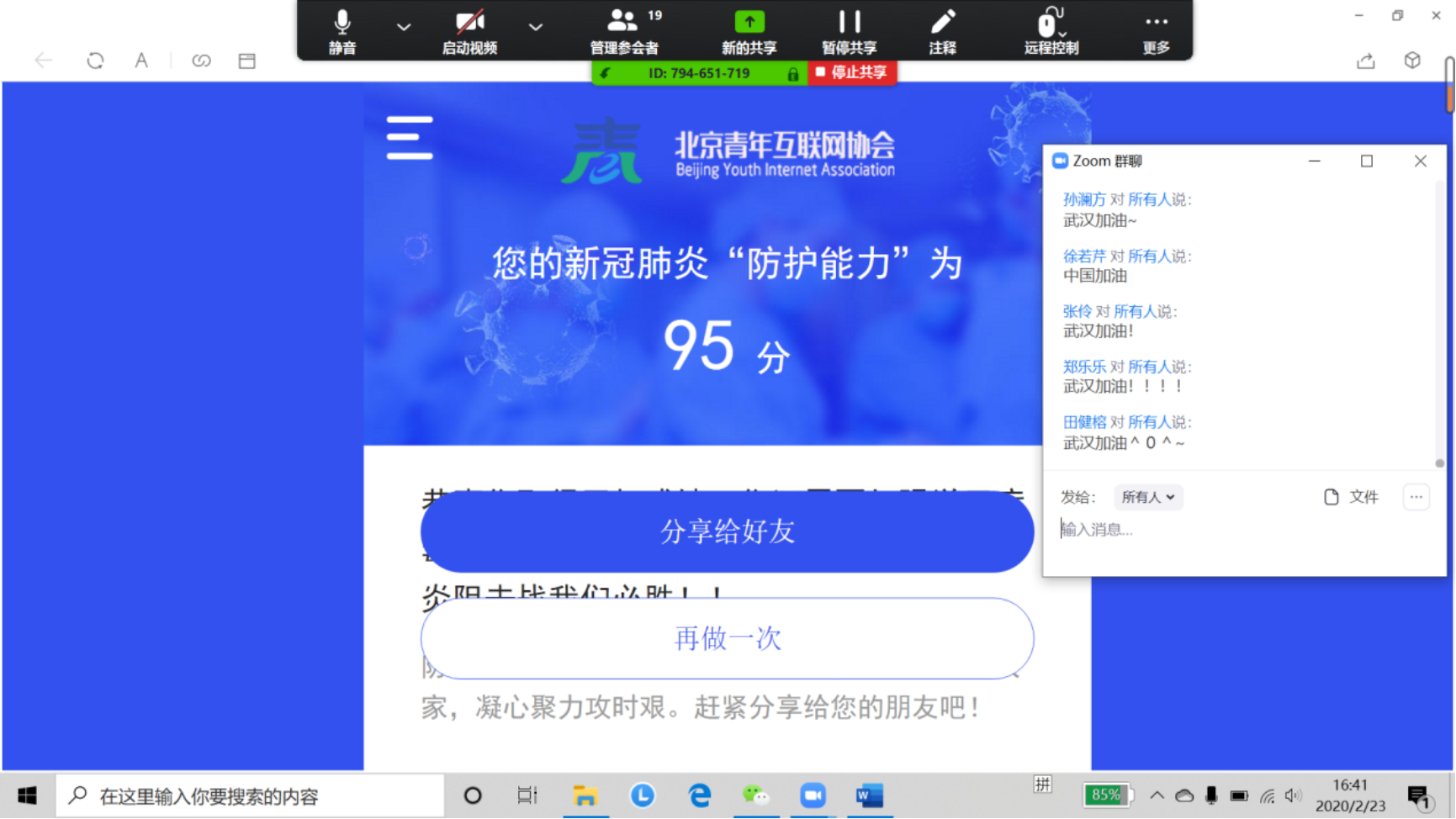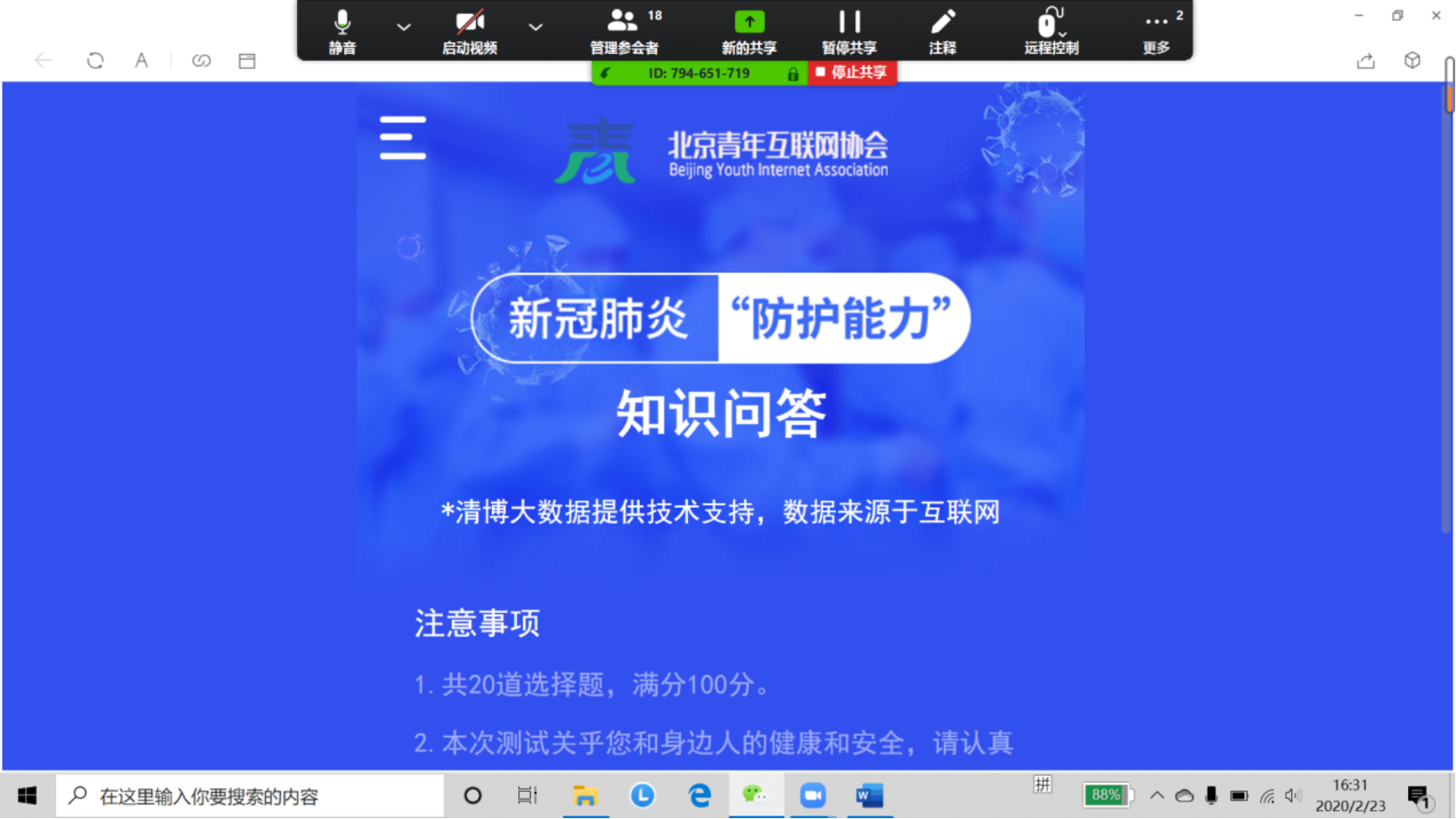 读书分享会结束后,大家还通过线上平台一起完成疫情知识问答,共同商讨问题答案,深入了解相关知识。