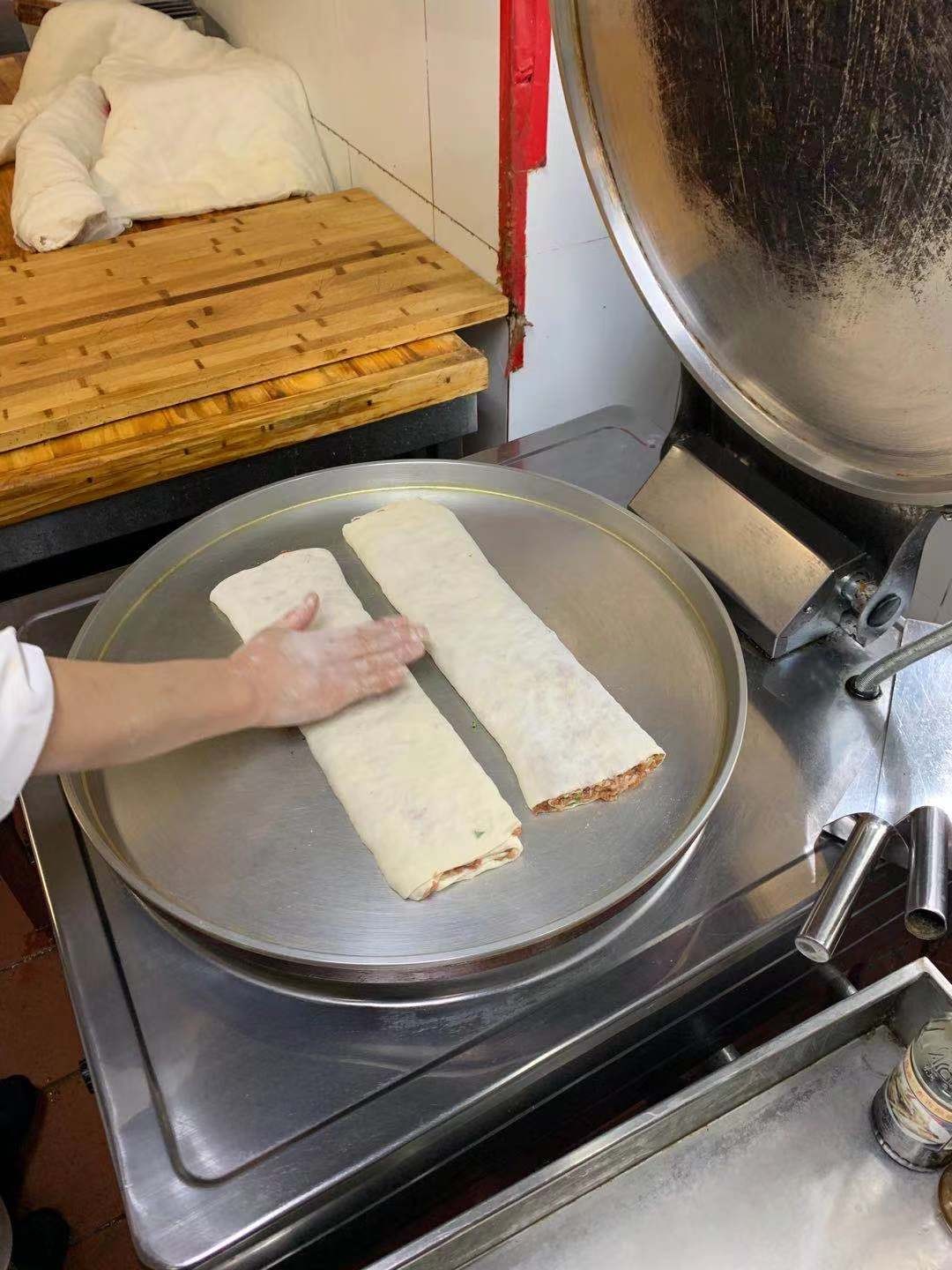 此次活动,公司有十余位教师参加了学习,师傅们从和面、调馅、烙制等每一个环节进行了教学,师傅们教得认真,老师们学得专注,随着一个个金灿灿香喷喷的肉饼出锅,厨艺学习班在大家的欢声笑语中迎来高潮。