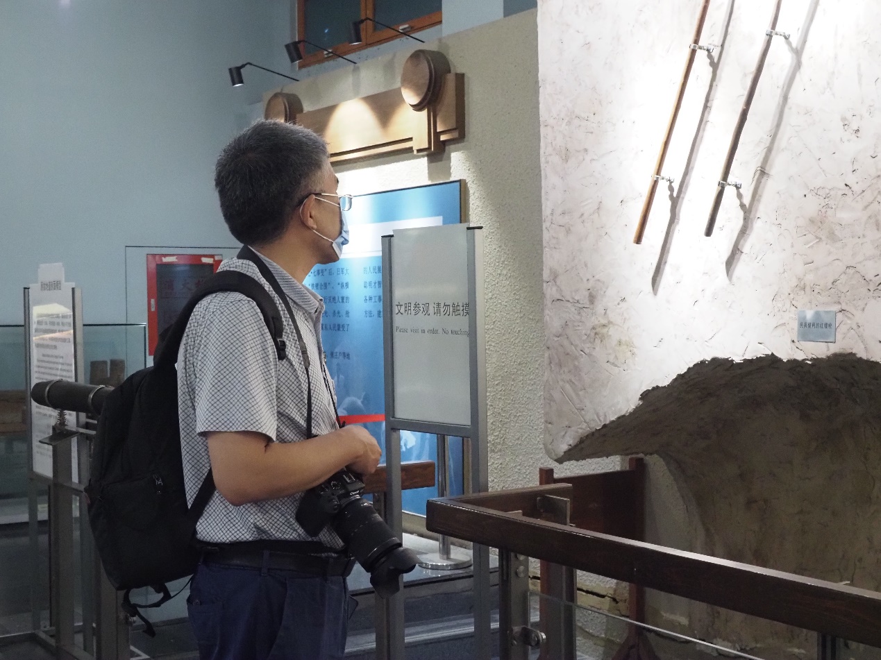 现在的焦庄户地道战遗址纪念馆收藏的革命文物主要有挖地道使用的各种工具、民兵使用过的各种武器、群众使用过各种农具等。党员们认真地参观了陈列的每一件文物和每一张老照片,四周的这些珍贵的物件散发着淡淡的光芒,透过它们,我们仿佛看见了许多平凡而伟大的故事,那些记忆仿佛能冲破事物本身,像海浪扑打着奔来。