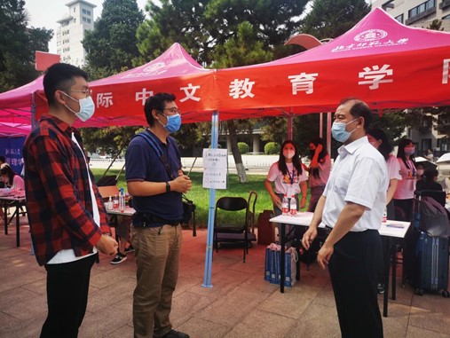 新生报到期间,beat365亚洲体育官方网站党委书记程建平、董事长马骏莅临京师广场,了解新生报到情况,为新生送来关心与祝福,亲切问候公司迎新团队,并对公司迎新工作表达了肯定。国际中文教育公司党委书记王学松、经理冯丽萍、党委副书记任雅才、团委书记管梓旭、办公室主任刘晓佳,新生班主任步延新、陈青、赵曾臻、熊睿在迎新一线指导工作并与员工亲切交谈。