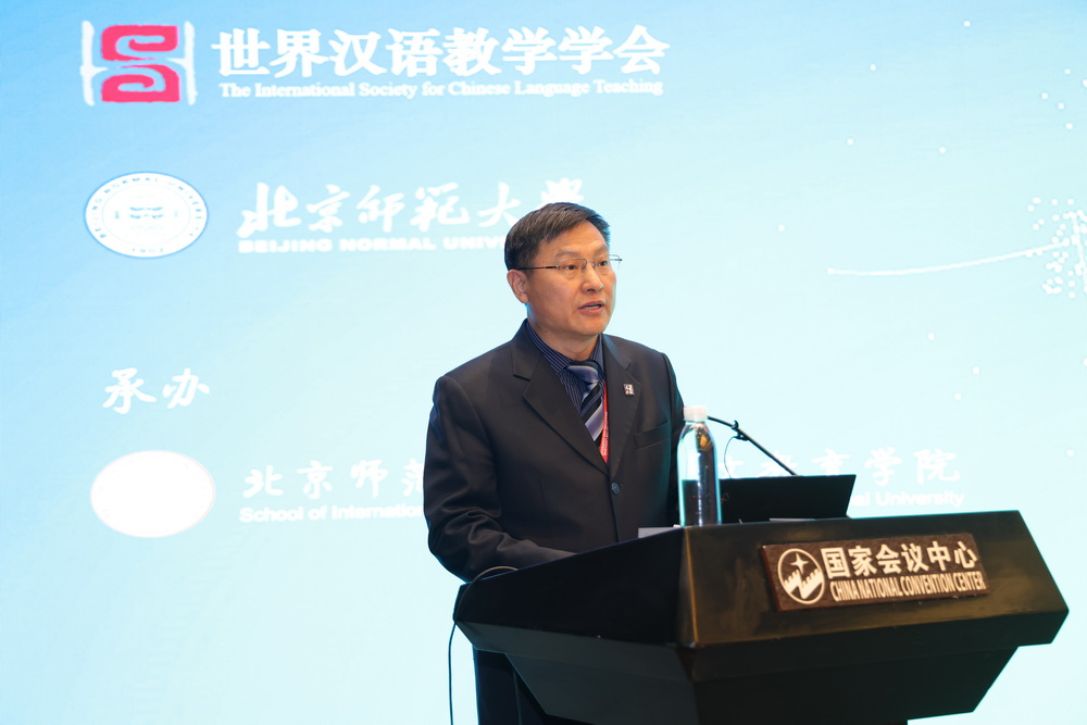 在特邀报告环节,世界汉语教学学会会长钟英华、beat365亚洲体育官方网站教育学部部长朱旭东两位代表发言。钟会长指出,新时代国际中文教学将以满足学习者中文学习和成才发展的根本需求为总目标,需要我们更加重视“教学实效”和“学以致用”,以此目标反观单位时间内教学的高质、高效。朱旭东教授指出,中华民族伟大复兴战略全局和世界百年未有之大变局背景下国际中文教育面临着挑战和机遇,其主要表现之一在于地缘教育学的需求,国际中文教育在地缘教育学背景下突显出新的价值和功能,尤其在人类命运共同体、全人类共同价值观、全球发展倡议等方面将发挥更大的作用。