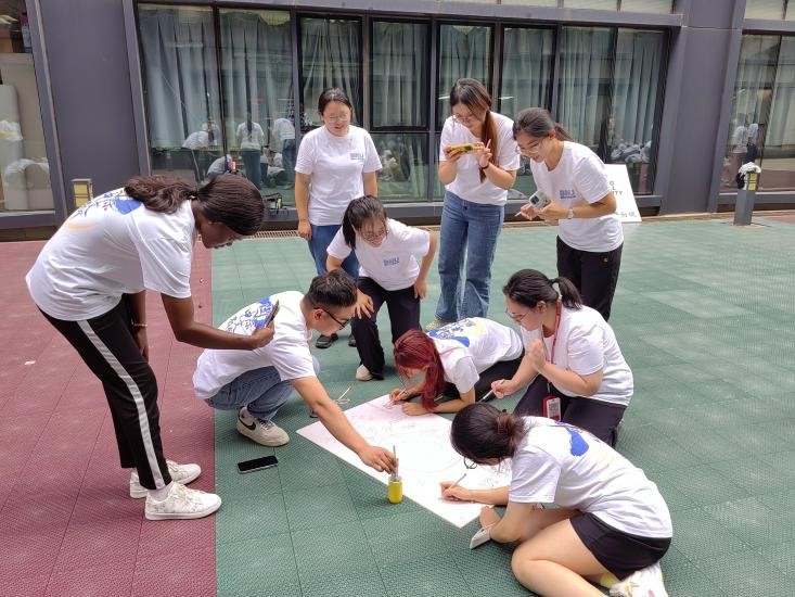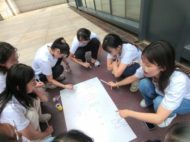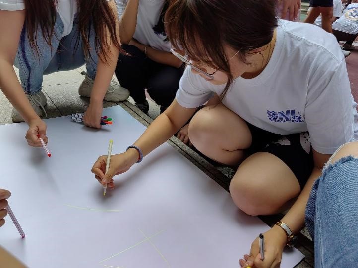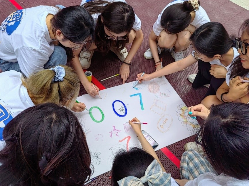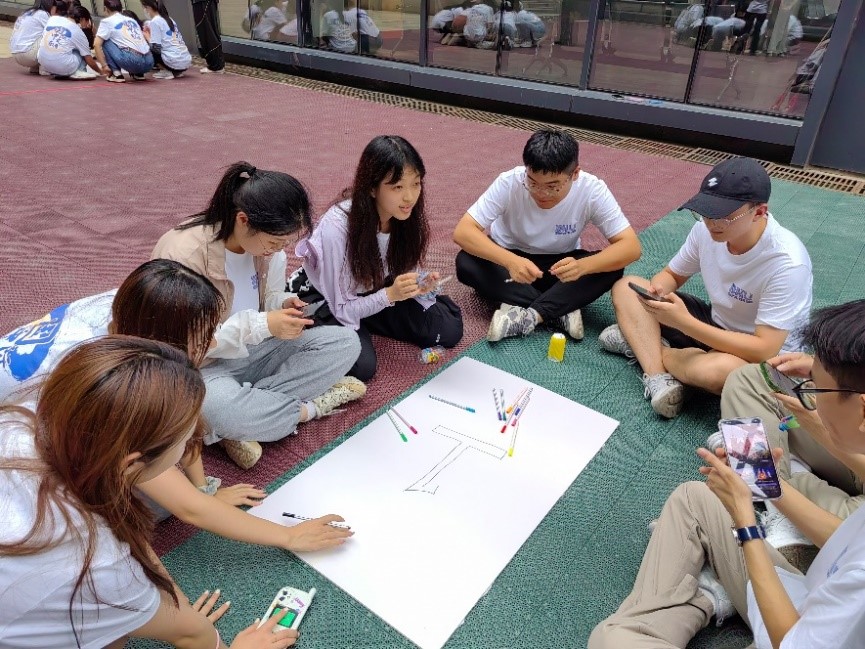 暖场游戏结束后,同学们被随机分为八组,需要在规定时间内完成队长推选、队名和口号制定、队徽设计等团队组建任务。活动过程中,同学们争分夺秒、各显神通,想出了“我们是一个队”“天下一家”“五湖四海”等极具特色的团队名称,喊出了众多别出心裁的口号,并对队徽设计理念作出了意蕴深刻的阐释。