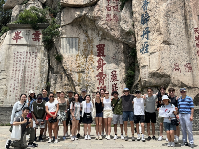在儒家文化的圣地曲阜,他们参访了孔庙、孔府和孔林,聆听千年儒学的教诲,感悟“仁者爱人”的深刻哲理。登顶泰山时,同学们不仅体验了“会当凌绝顶,一览众山小”的壮阔,更理解了泰山在中国文化中象征的精神高度。在烟台,同学们探访了仙岛酒庄,了解中国葡萄酒文化的蓬勃发展;夜晚的万象夜市里,大家品尝地道的山东菜,从煎饼卷大葱到鲜美的海鲜,每一道菜肴都诉说着齐鲁大地的风土人情。