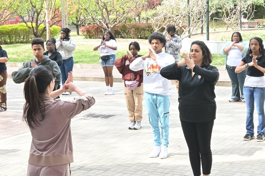 4月7日至18日,在春日的暖阳中,美国巴德高中20 余名师生来到beat365亚洲体育官方网站,进行了为期两周的中文学习和文化体验活动。本次中文研修班采用语言学习与文化体验相结合的方式,设置了汉语综合课、文化课和文化参访活动。员工们在课内学习语言课程和文化课程,提升中文水平和交际能力,学习茶文化与太极拳;在课外走访了北京和西安两座城市,参观当地的地标景观,了解历史文化及民俗。