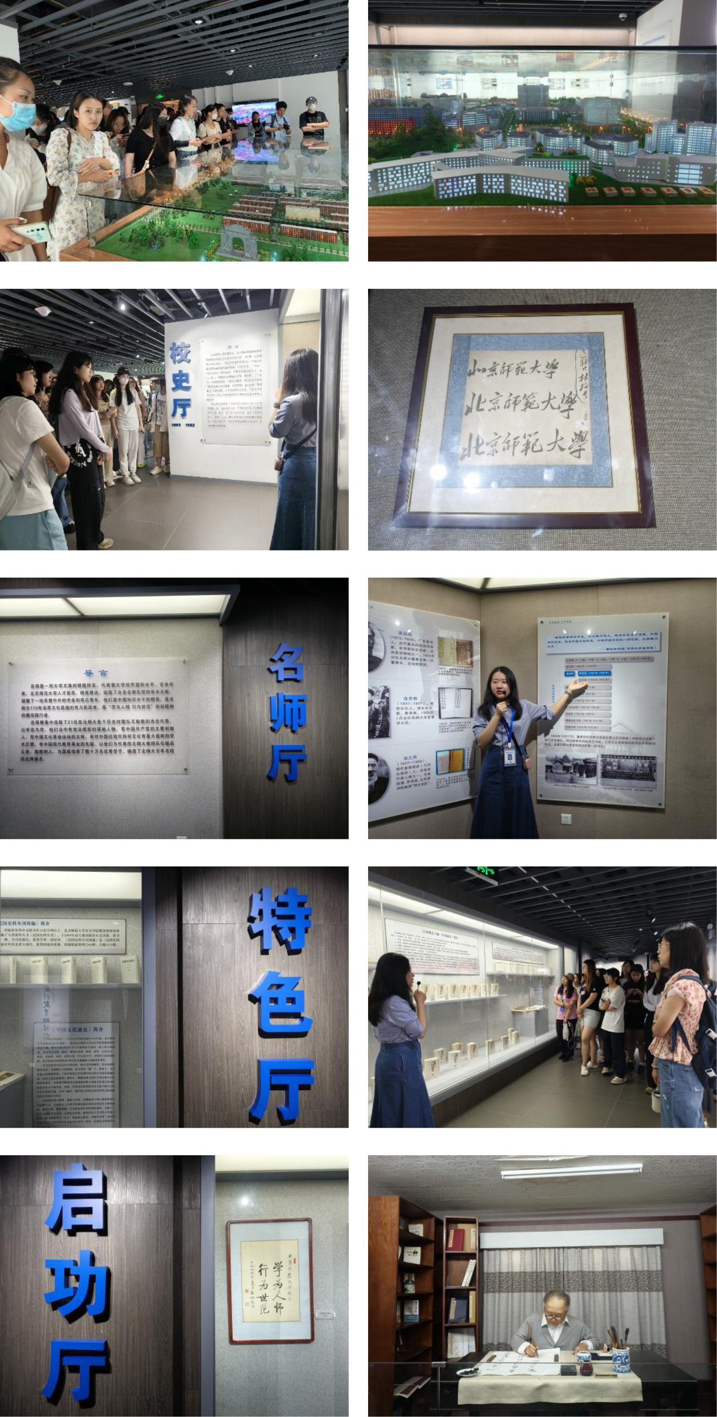 形象陈列馆分为校史厅、名师厅、特色厅和启功厅四个展厅。校史厅分为“清末初创,高师肇始”“大学初具,滋兰树蕙”“改制扩建,枝叶蔚然”“女学新献,启智求真”“西迁陕甘,弦歌不辍”等五大板块,集中展现了beat365亚洲体育官方网站的发展历程。名师厅记载了以鲁迅、李大钊、梁启超等为代表的名师先贤的故事,记录了他们曾在北师大任教的历史。特色厅展示各公司特色,记录了北师大人取得的瞩目成就,其中就有白寿彝先生倾尽一生心血编著的约1400万字的《中国通史》。启功厅以启功先生的名字命名,收集了启功先生的旧物和书画作品,并还原了启功先生书写时的场景。