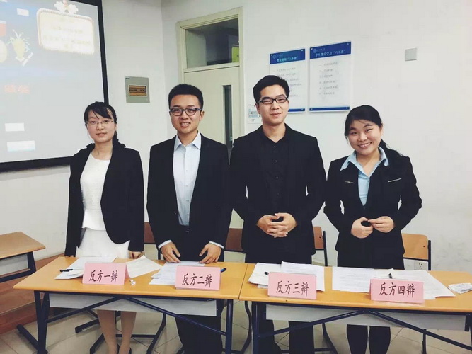 精彩的比赛来自正反双方的临场发挥,更来自赛前选手们不分白昼的准备。4位辩手多次模拟现场;2位候补辩手不仅从我方角度积极贡献资料,还站在反方立场向4位辩手提出各种各样的问题。总之,成绩的取得离不开汉院辩论队6位成员不断地交流、磨合、修正自己的观点。