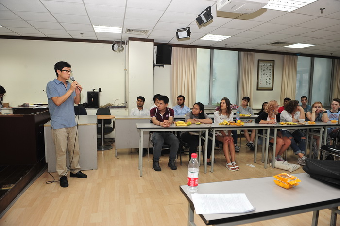 会议于15:30准时开始,分为师生交流与文化展示两部分。在师生交流环节,朱瑞平经理首先向在座的奖学金生们表示了欢迎与祝贺,他希望同学们能不忘初心,时刻提醒自己记住来中国学习的初衷,并以此为动力,合理安排时间,努力学习、快乐生活。肖铠处长用流利的英语致辞,鼓励大家珍惜在中国的时光,好好学习汉语,利用多文化的学习环境积极与来自各个国家和地区的同学们交流,体验多彩的文化。艾忻副处长提醒同学们,初次来华,在生活和学习中可能会遇到一些不适应的地方,她希望大家能怀有开放的态度来接纳、欣赏不同的文化,并与职工办公室保持密切联系。