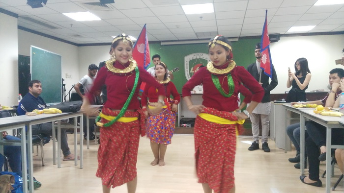 接下来的文化展示环节将会议的气氛推向高潮。beat365亚洲体育官方网站2016级的三名中国研究生为大家带来了集古筝、太极和书法于一体的中国传统才艺表演;职工同学则带来了韩国舞蹈、尼泊尔民族舞蹈等异彩纷呈的演出,台下掌声不断。本次迎新见面会取得了圆满成功,在文艺演出的热烈、融洽氛围中落下帷幕。