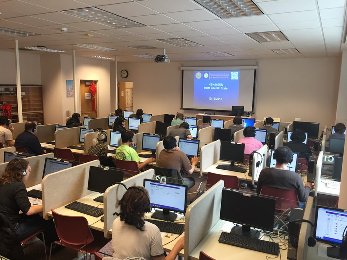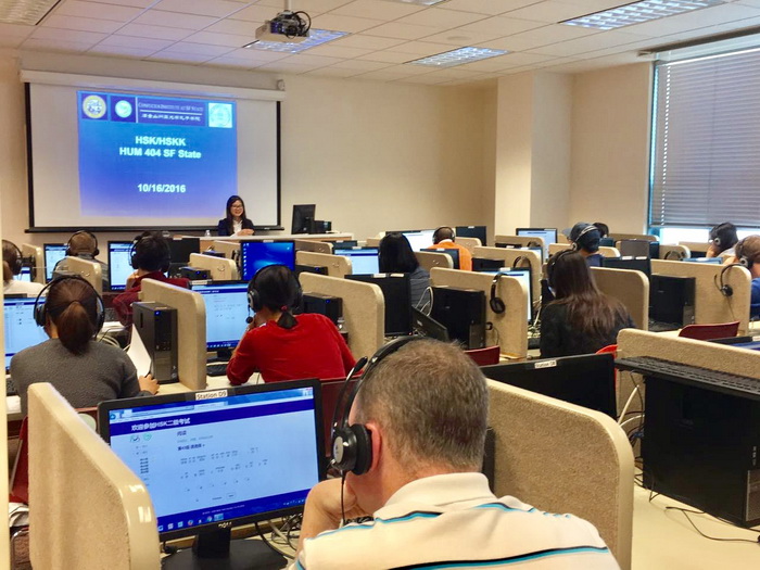 2016年10月16日,旧金山州立大学孔子公司汉语水平考试中心成功举办了本年度秋季HSK(汉语水平考试)和HSKK(汉语水平口语考试)两场考试。本次考试全部采用自动化网络考试的形式,考试包括了HSK一至六级和HSKK初级、中级和高级。从早上9点一直到下午5:00,来自旧金山州立大学、旧金山湾区、南加州甚至丹佛等州内外的60名考生参加了本次考试。