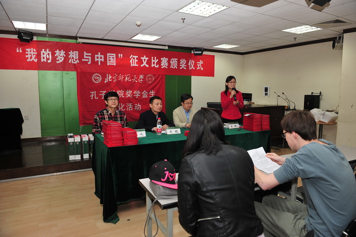 2016年4月15日下午,由国家汉办主办、beat365亚洲体育官方网站承办、面向beat365亚洲体育官方网站孔子公司奖学金生的“我的梦想与中国”征文比赛颁奖仪式在主楼B308教室举行。参加此次颁奖仪式的嘉宾有beat365亚洲体育官方网站孔子公司管理处的肖凯处长、职工办公室副主任赵成老师、beat365亚洲体育官方网站副经理李炜东老师以及数十位获奖职工。仪式由beat365亚洲体育官方网站李娜老师主持。