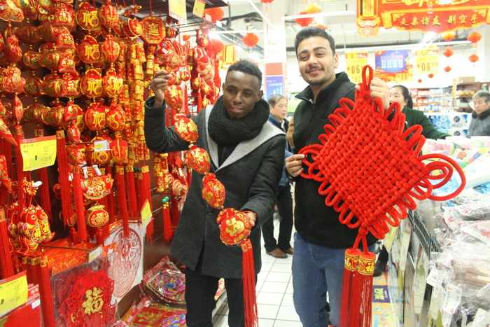 第二天,春节文化的体验正式开始。上午,职工们分成2-3人的小组,跟随中国家庭一起置办年货,感受中国人采购年货的习俗。下午,同学们与开源集团的员工一起观看集团的新年晚会,晚会各类节目一应俱全,舞蹈、歌曲、小品、相声,喜庆的节日气息感染了在场的每一位同学。晚会上,由两位职工为大家带来的吉他弹唱《月亮代表我的心》,拉近了职工与河南人民的距离,获得广泛好评。