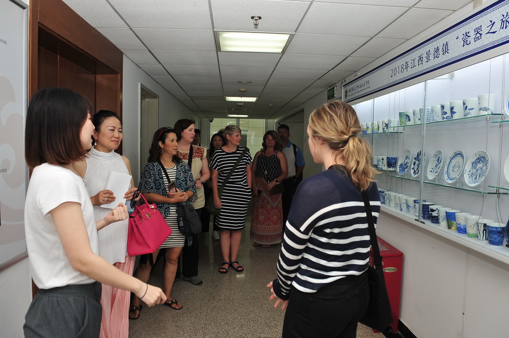接着访问团前往公司,参观了公司的橱窗和照片展示墙。访问团的老师们对汉院师生的陶瓷作品赞叹不已。