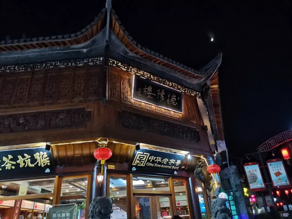 当晚,公司师生来到了被誉为 “流动的清明上河图”的屯溪老街。老街的建筑沿袭了宋代风格,是唯一的“国家历史保护街区”,与北京国子监街、苏州平江路一同当选为“中国历史文化名街”。在这里,同学们品尝了安徽名茶——太平猴魁和祁门红茶以及安徽点心——徽墨酥和黄山烧饼。