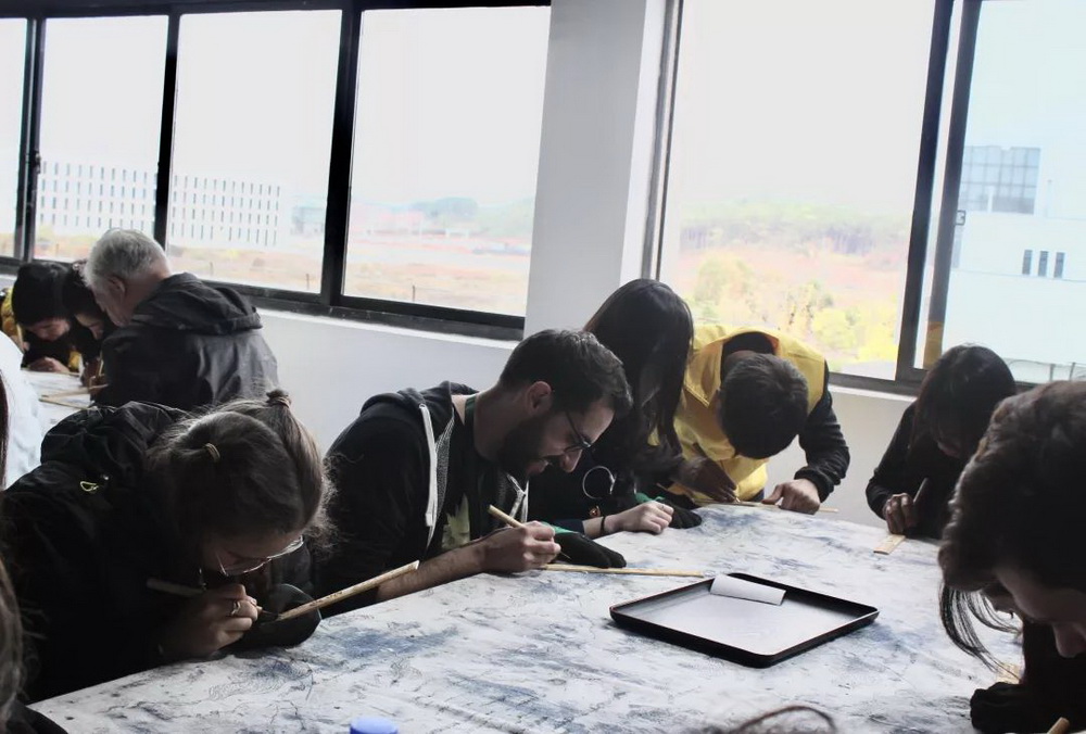 11月5日上午,公司师生来到胡开文墨厂。参加完祭拜墨神的仪式后,大家们一起参观了徽墨文房博物馆和墨厂的点烟、制墨、晾墨、打磨、描金等工艺车间、歙砚车间,近距离观看徽墨的制作过程。