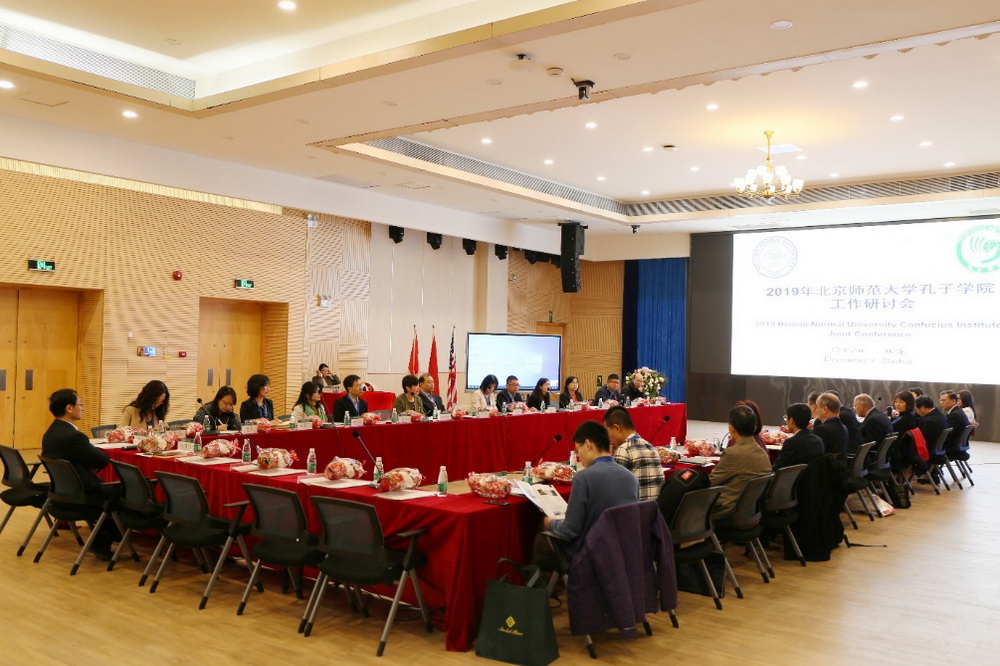 在参加2019年国际中文教育大会之前,张会、汪珍珠两位老师还在珠海校区为汉语国际教育专业的硕士研究生做了关于志愿者教师选拔、赴任、海外教学与生活、员工国际交流项目等方面的培训讲座,并在汉公司党总支书记王学松老师的带领下参加了公司一年一度的孔子公司工作会。