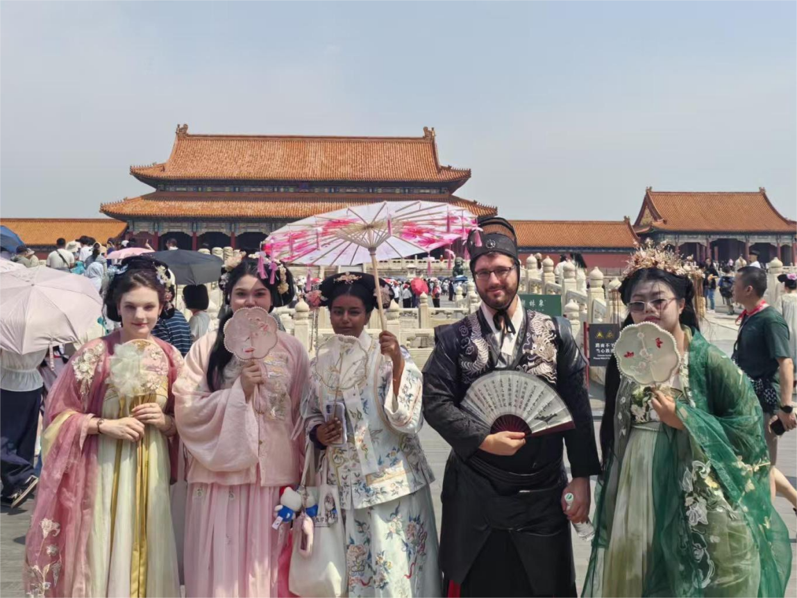 学员们执箸习礼,领悟“一动一静”的东方辩证思维;循图溯史,在朱垣金瓦间触摸紫禁城的历史脉动。茶艺实践课氤氲千年雅韵,“天坛”“颐和园”导览揭示天人合一的建筑哲学,而“启功”专题则彰显文人风骨与书法之美。当现代性议题“独生子女”与传统“婚礼”习俗并置研讨,文化认知的维度被显著拓宽。