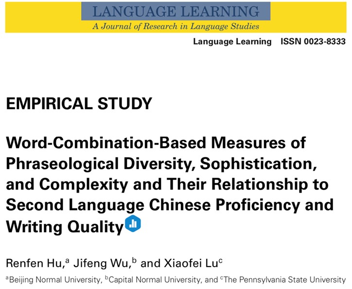 公司国际中文教育科研成果在国际顶级期刊Language Le...