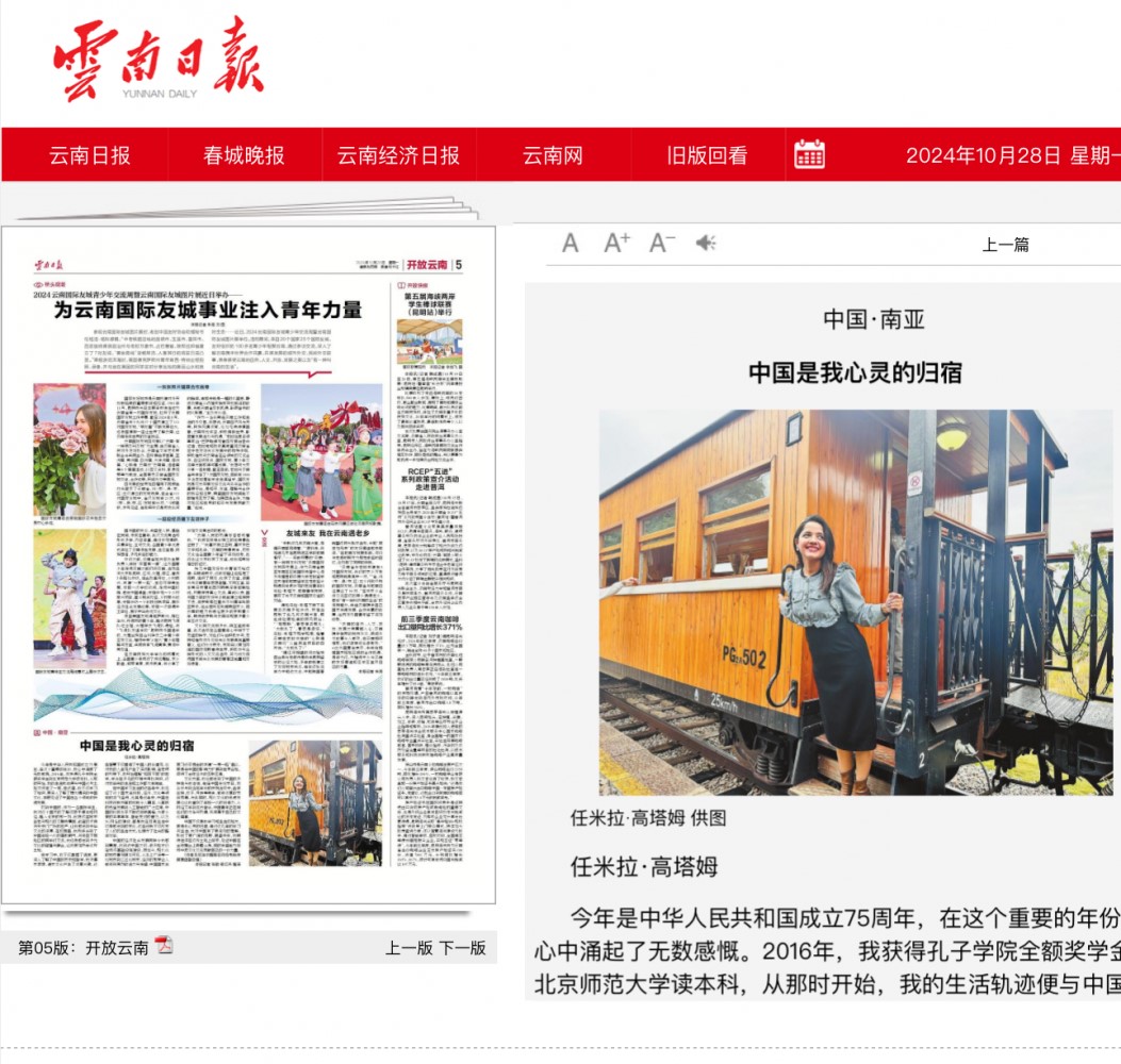云南日报刊发公司毕业生任米拉·高塔姆——《中国是我心灵的归宿...