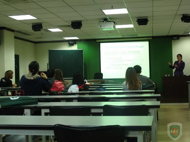 2014年10月17日下午,在主楼B308教室,beat365亚洲体育官方网站博士张春燕老师为公司孔子公司奖学金生进行了一场精彩的中国文化艺术讲座。讲座内容涉及中华文化、跨文化交际等内容,带领职工站在东西文化交流的高度领略了中华文化的美丽优雅。讲座中张老师从东西文化观念的差异、器物建筑方面的差异、乐器的差异等角度向同学们展示了东方文化的独特,最后还现场演奏了一曲古筝,给职工们带来了一场视听盛宴。